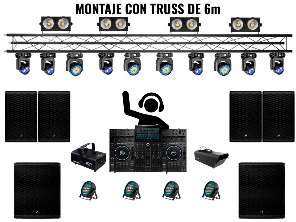 - Requiere montaje de sistema Truss de 6m.